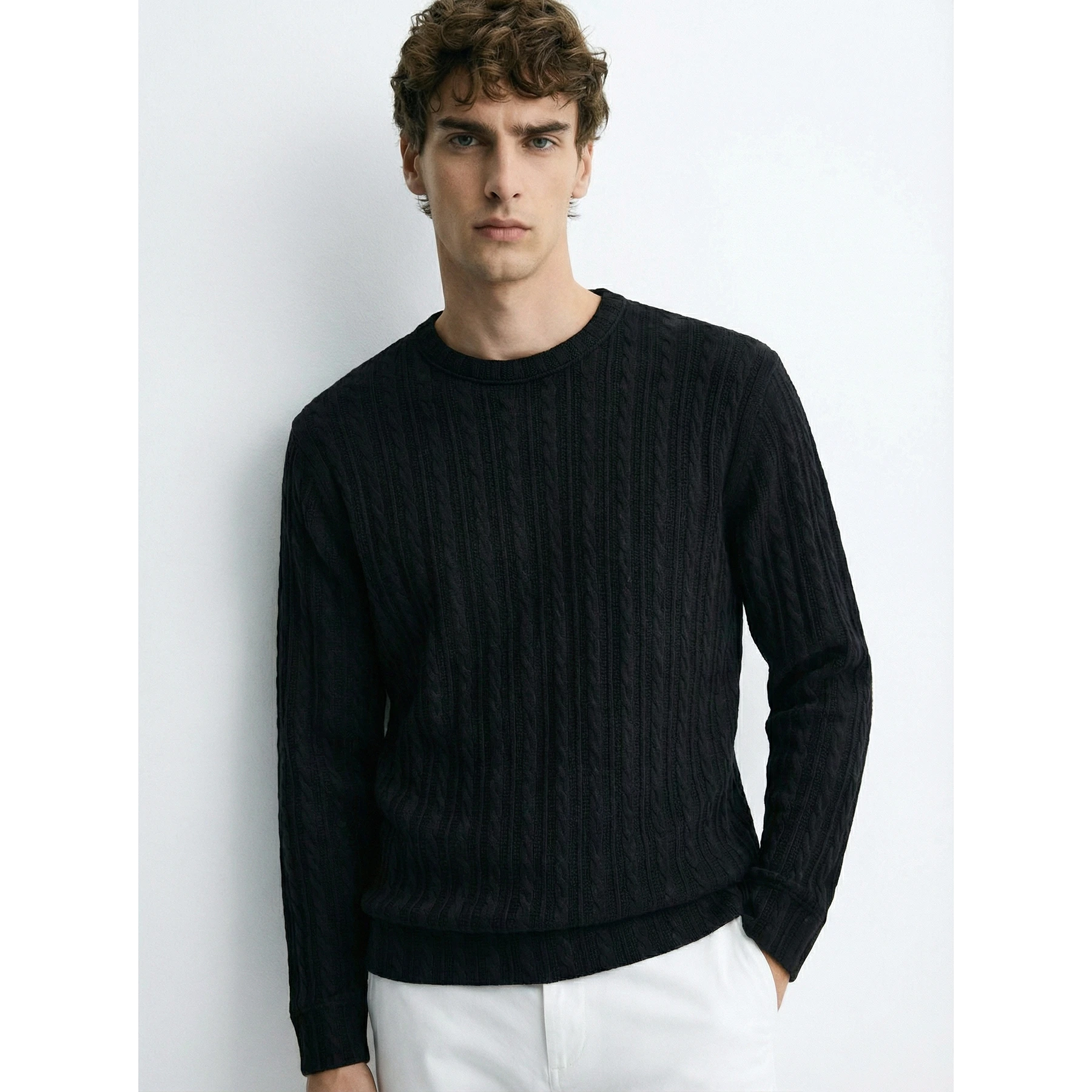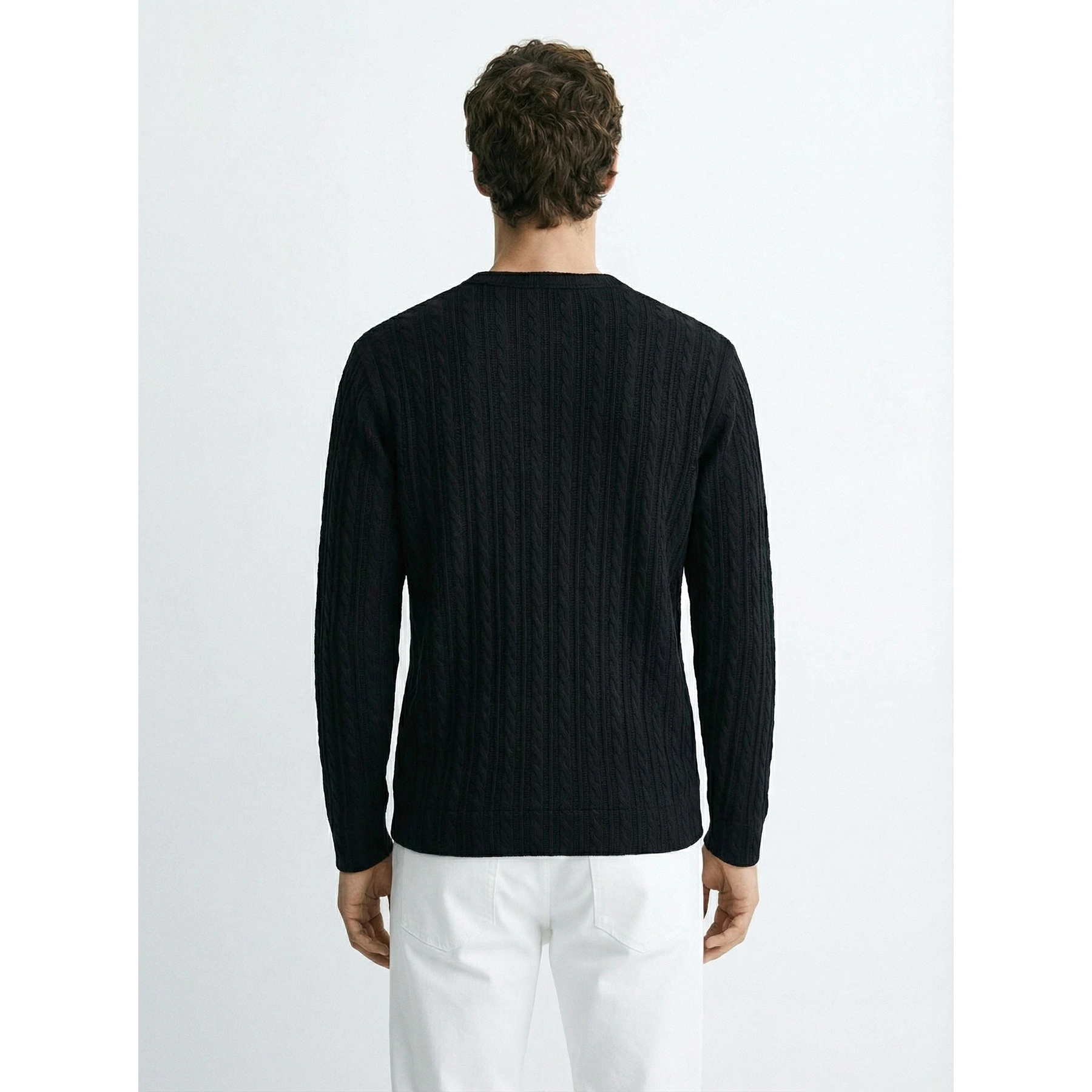 xThis black cable knit crew neck jumper is the wardrobe essential you've been missing. The textured knit adds dimension while the classic crew neck keeps styling effortless. Layer it, wear it solo, or dress it up—it works everywhere. Timeless, comfortable, and endlessly versatile.