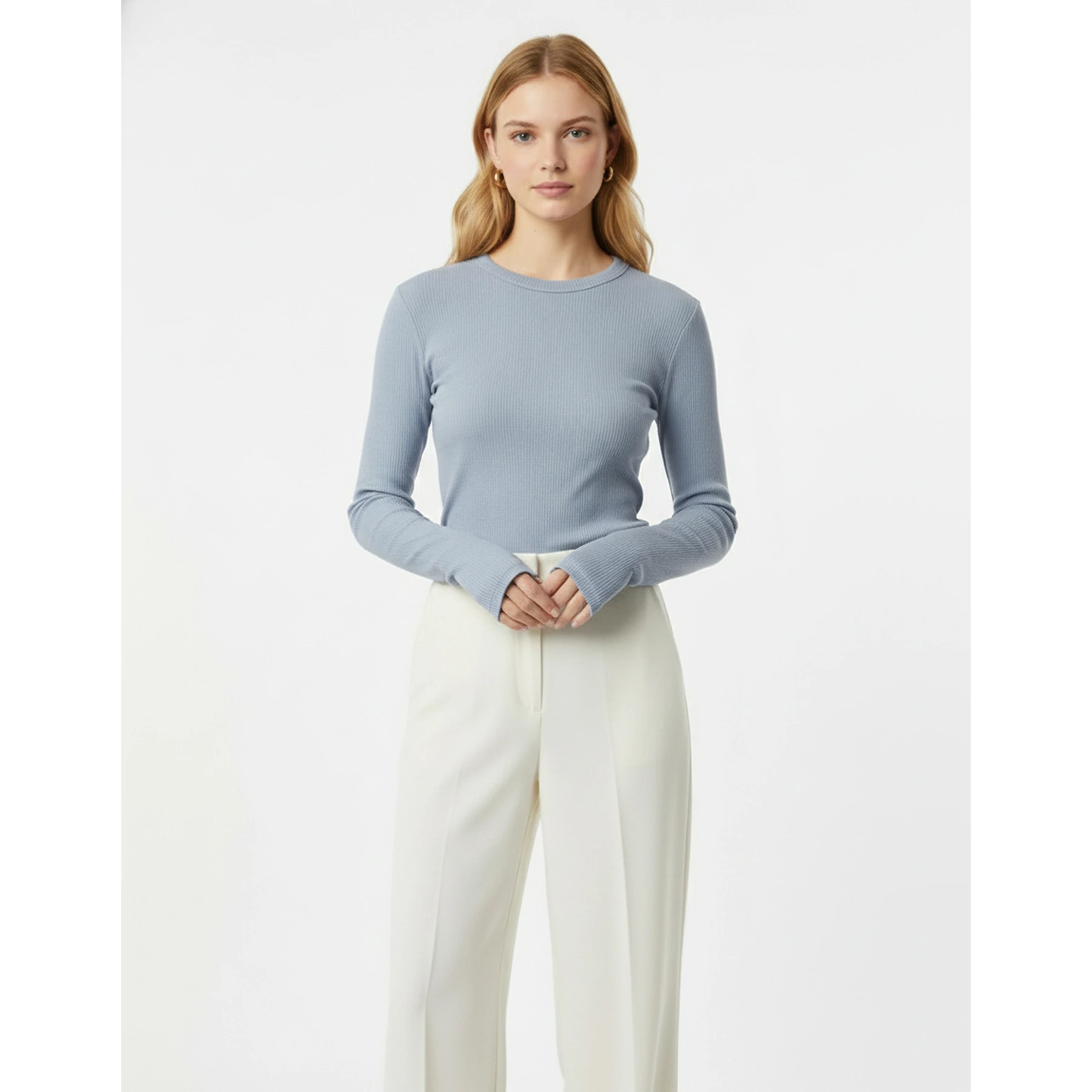 xElevate your everyday style with this versatile and chic ribbed crew neck top. Designed for a flattering, comfortable fit, this long-sleeve knit features a subtle texture and a classic neckline, making it an indispensable layering piece or a polished standalone statement. Pair it effortlessly with tailored trousers for work or denim for the weekend.