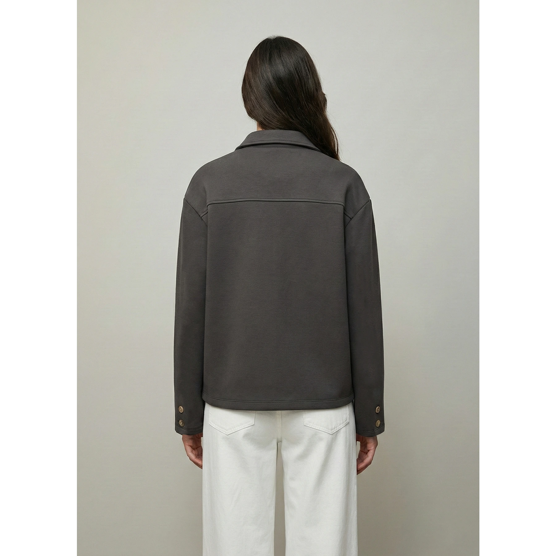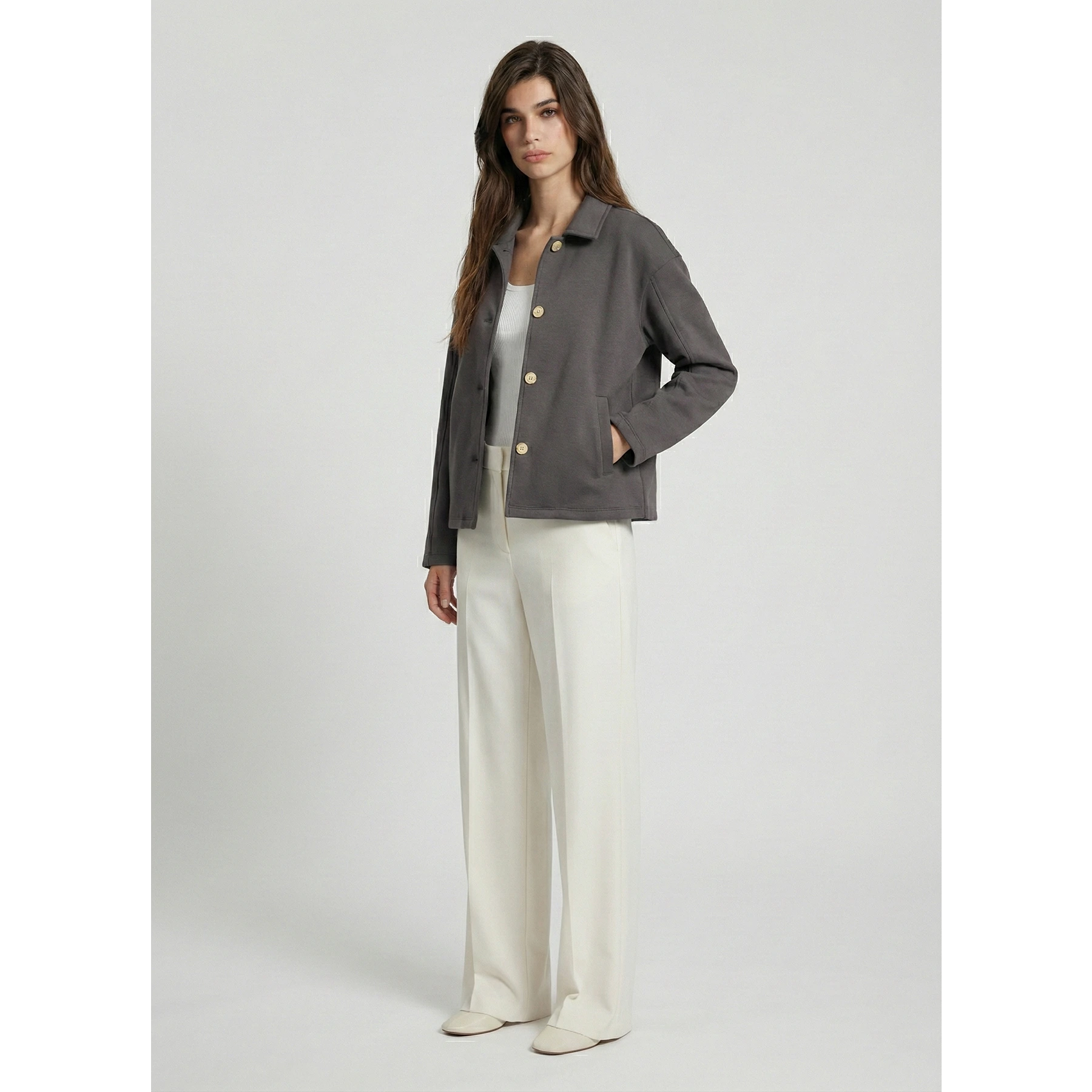 xElevate your everyday style with this sleek grey button-down coat. Crafted from soft fleece, it delivers warmth without the bulk, while practical side pockets keep your essentials within reach. Perfect for layering or wearing solo, this versatile piece transitions seamlessly from casual outings to polished occasions.