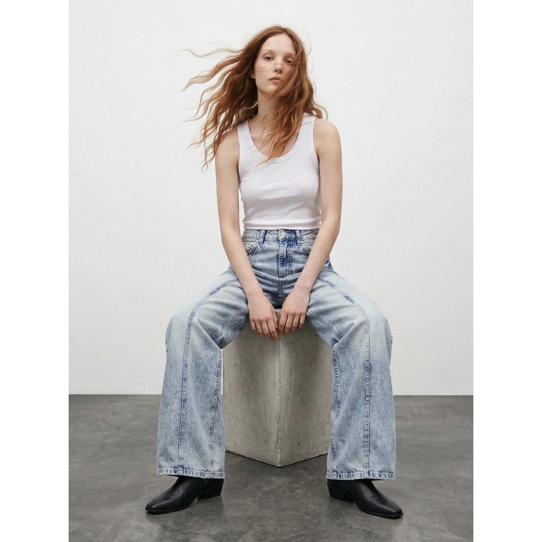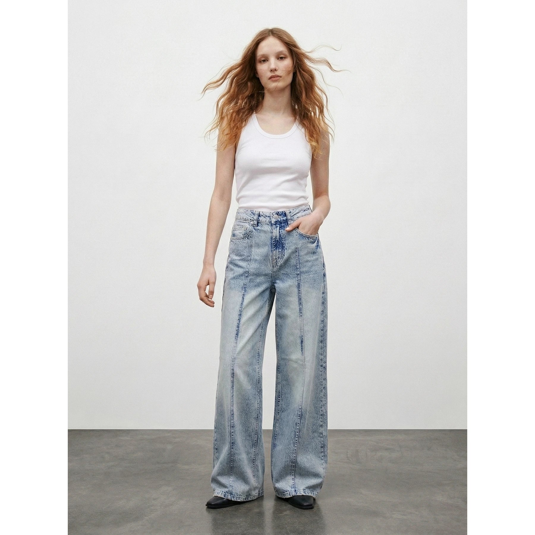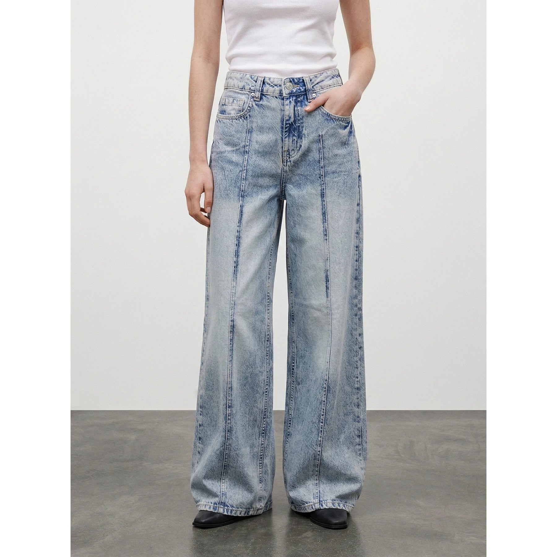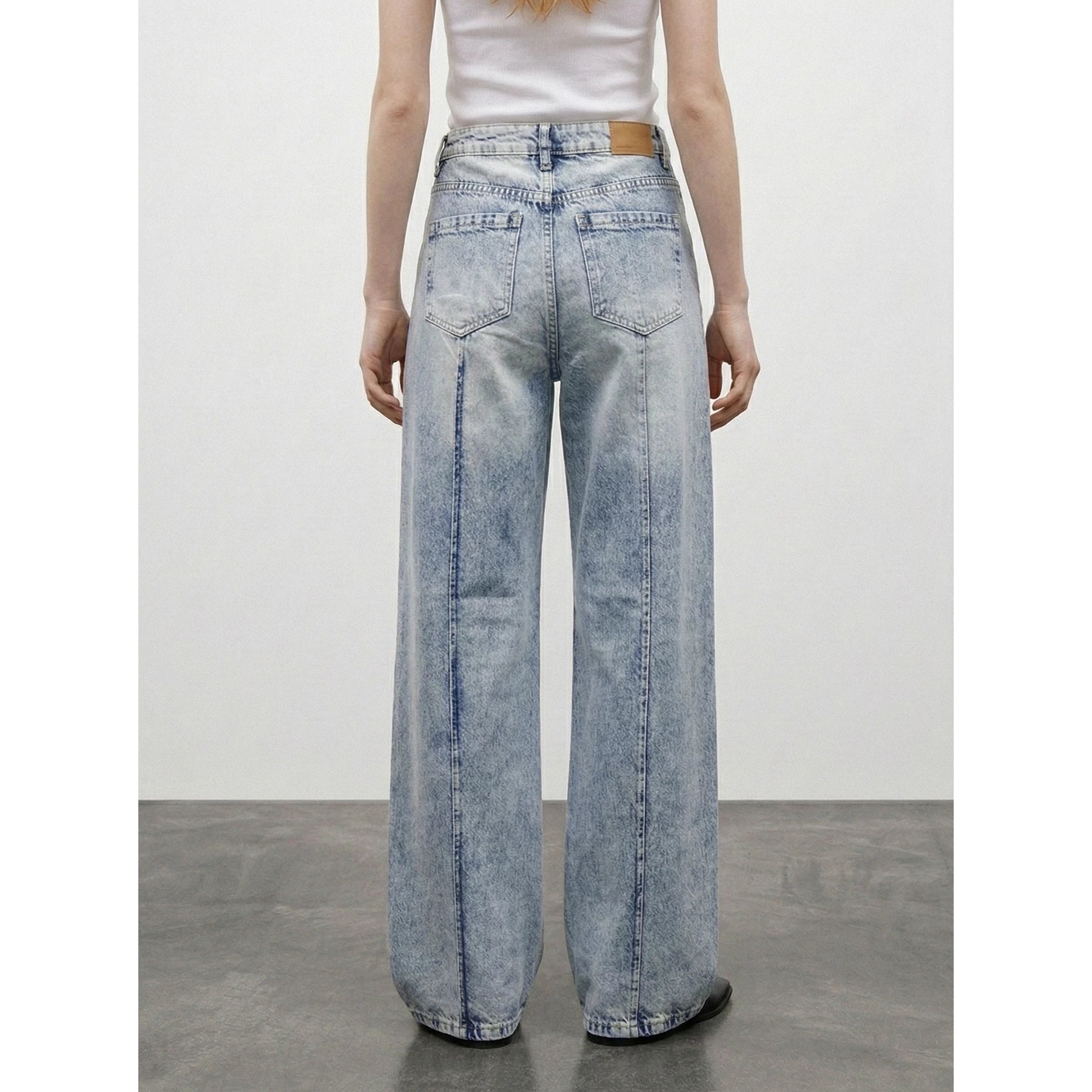 A vintage-inspired statement piece, these jeans combine a nostalgic acid wash with a sharp, architectural silhouette. Defined by their prominent seam detailing, they offer a structured and elongated look for a modern wardrobe.